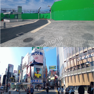 渋谷のスクランブル交差点を実用サイズで再現可能なオープンセットスタジオです。面積6,585㎡。