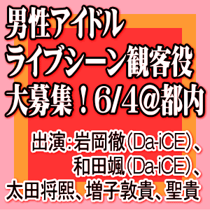 出演者:岩岡徹(Da-iCE)、和田颯(Da-iCE)、太田将熙、増子敦貴、聖貴 - 応募方法