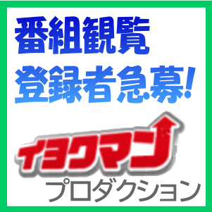 首都圏と関西の両方に拠点を置く エキストラ/番組観覧 のマネージメント事務所「イヨクマンプロダクション」の公式サイトで、番組観覧の新規登録者を緊急募集、とのことです。