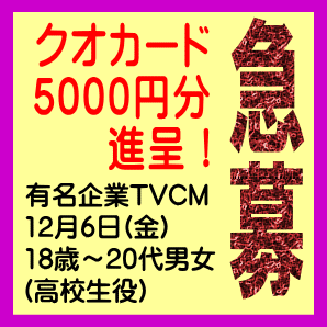 某有名企業TVCM 12月6日(金)18歳~20代の男女100名急募!