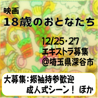 映像制作会社からのご依頼により、下記新作映画のエキストラ募集情報をお知らせします。