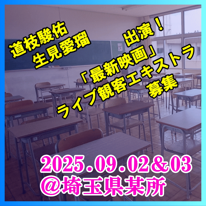 ☐大変恐縮ですが、ボランティアでのご参加となります。交通費、宿泊費、出演料の支給はございませんが、 ご参加いただいた皆様には映画オリジナルグッズ(非売品)をお渡しいたします!9月2日(火)場所:埼玉県某所