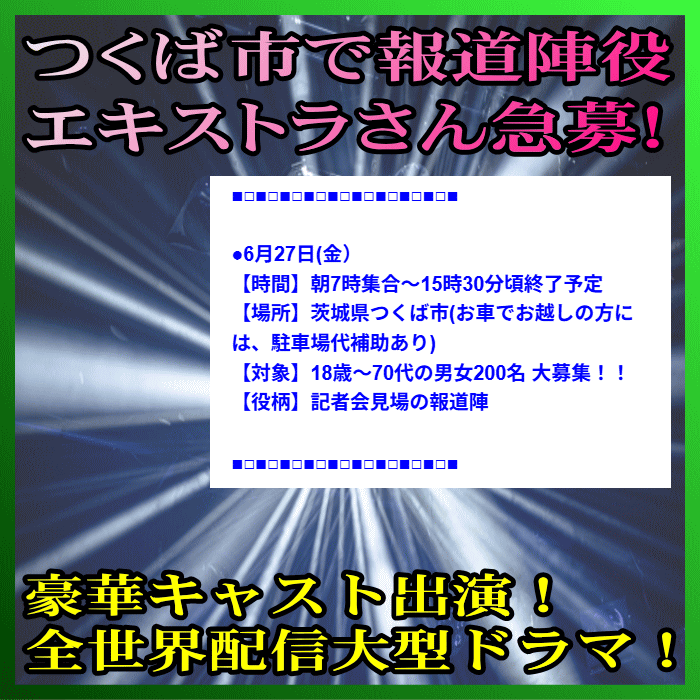 6月27日(金)@茨城県つくば市の緊急大募集情報が入りました。よろしくご検討を。