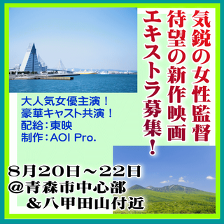 本作では、8月20日(水)~8月22日(金)に青森県内にて行われる撮影にご協力いただけるボランティアエキストラの皆様を大募集します!!