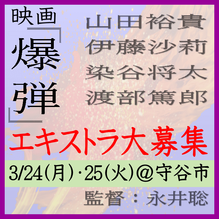 本作では3月24日(月)・25日(火)に茨城県守谷市 新守谷駅周辺にて行われる撮影にご協力いただけるボランティアエキストラの皆様を大募集します!!