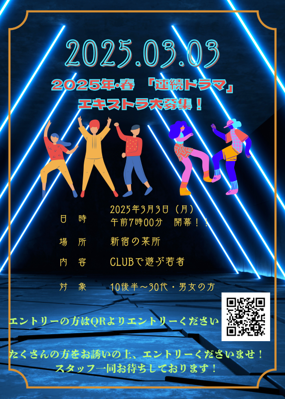 ご依頼により、新作ドラマのエキストラ募集情報をお知らせします。