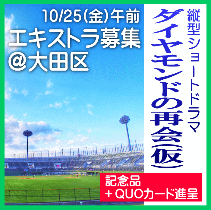 10/25 午前中 大田区球場でのエキストラ大募集!!