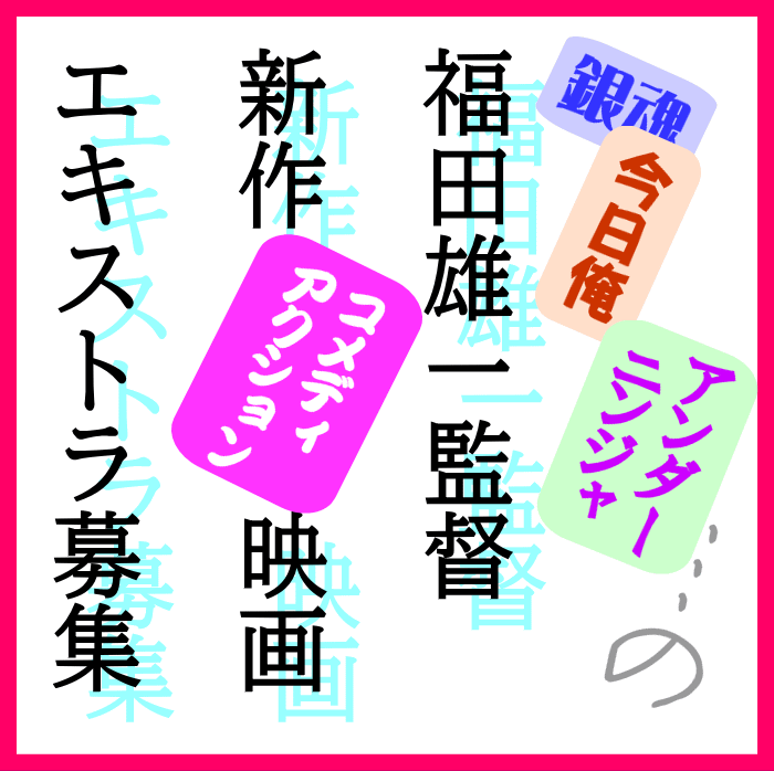 作品のタイトル等は未公表ですが、『銀魂』「今日から俺は‼」『アンダーニンジャ』「勇者ヨシヒコ」他の福田雄一監督の最新作とのことです。