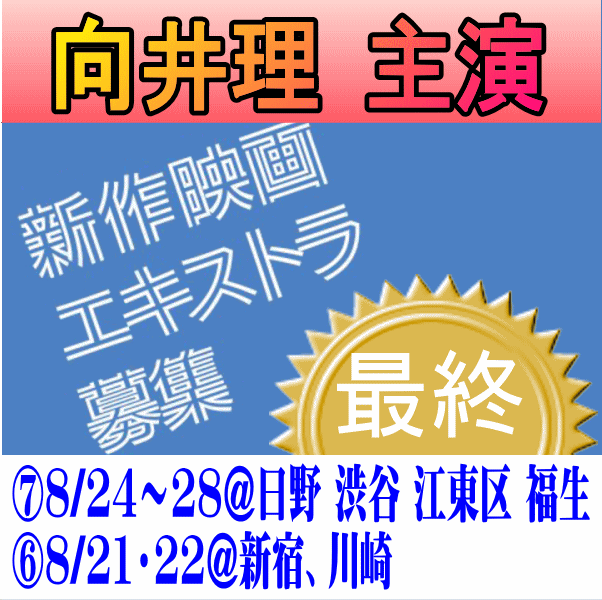 「向井理主演」という以外の情報は開示されていませんが、むろん撮影に参加すればわかること。気になってしょうがない方は、この夏の思い出作りにご参加ご検討を。