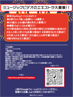 映像制作会社からのご依頼により、エキストラ募集情報をお知らせします。