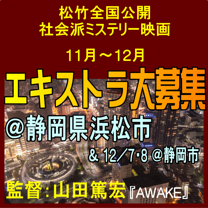制作会社からのご依頼により、新作映画のエキストラ募集情報をお知らせします。