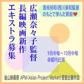 是枝裕和監督、西川美和監督のもとで学んだ新鋭・広瀬奈々子監督による新作映画のボランティアエキストラを募集いたします!