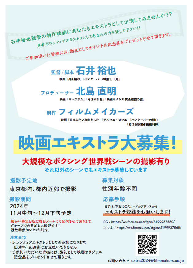 石井裕也監督の新作映画にあなたもエキストラとして出演してみませんか??