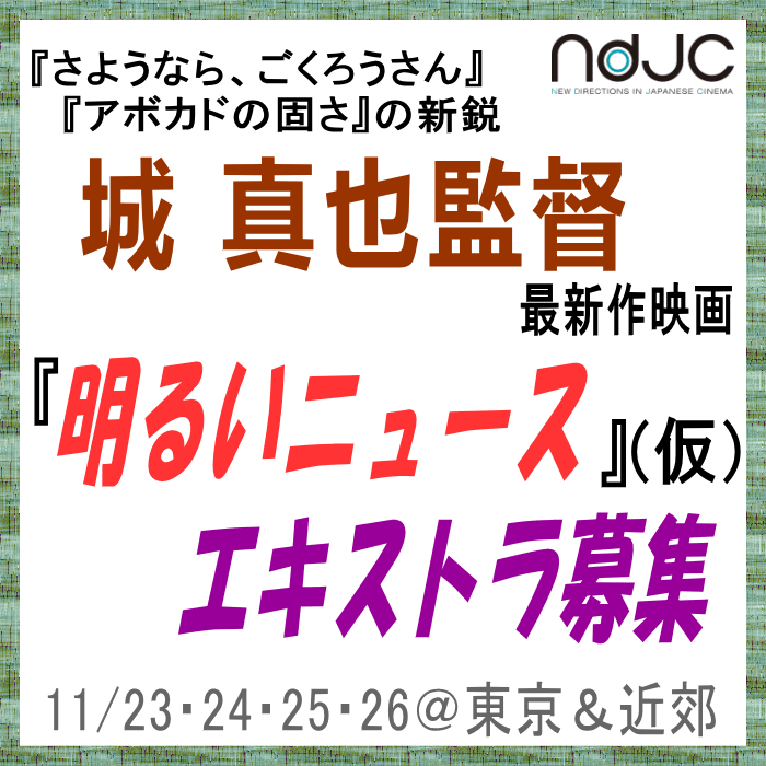 当サイトでも何度か告知をお手伝いした、文化庁委託事業「若手映画作家育成プロジェクト」の本年度製作作品(4本)のひとつ、とのこと。撮影は今月下旬に東京&近郊で行われます。