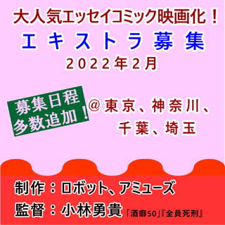 2月に主に東京、神奈川、千葉で撮影する映画に、エキストラとして参加していただける方を募集します。エキストラ大募集!!