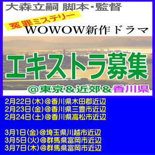 映像制作会社からのご依頼により、下記WOWOW新作ドラマのエキストラ募集情報をお知らせします。