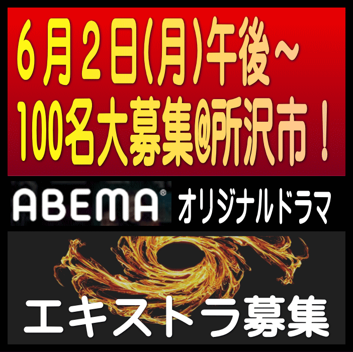 並行して募集中の下記記事と同じドラマですが、こちらでは6月2日(月)所沢市超大型ロケの募集情報に絞ってお伝えしています。