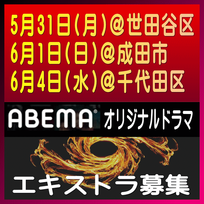 ・ABEMAオリジナルドラマ 5月31日(土)@世田谷区、6月1日(日)@成田市、4日(水)@千代田区