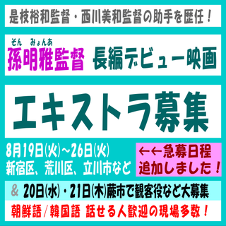 映像制作会社「K2 Pictures Production」様からのご依頼により、新作映画のエキストラ募集情報をお知らせします。