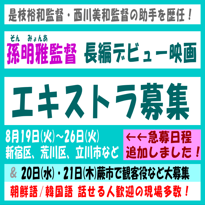 *本作で監督の孫明雅 さんは、大阪出身・在日コリアン3世で平成元年世代の女性。2017年より「分福」に所属、是枝裕和監督や西川美和監督作品の監督助手など経験を重ね、今回が長編商業映画第1作とのことです(以上、分福公式サイト掲載のプロフィールから抜粋).。