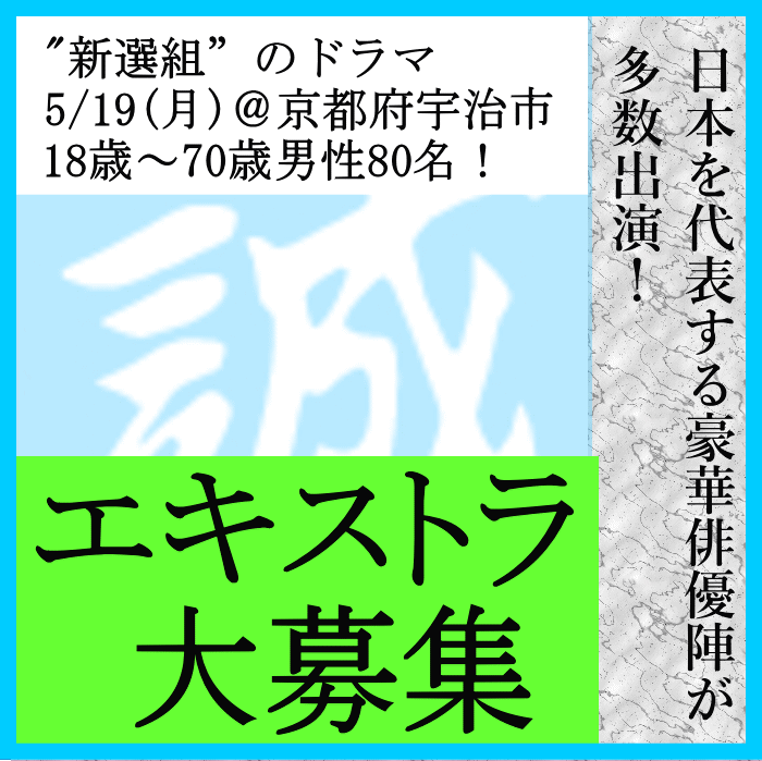 地上波&配信による超大作「新選組ドラマ」よりエキストラさん大募集のお知らせです!!