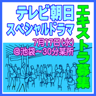 新作ドラマのエキストラ担当スタッフさんからのご依頼により、テレ朝/東映が制作する新作ドラマのエキストラ募集情報をお知らせします。