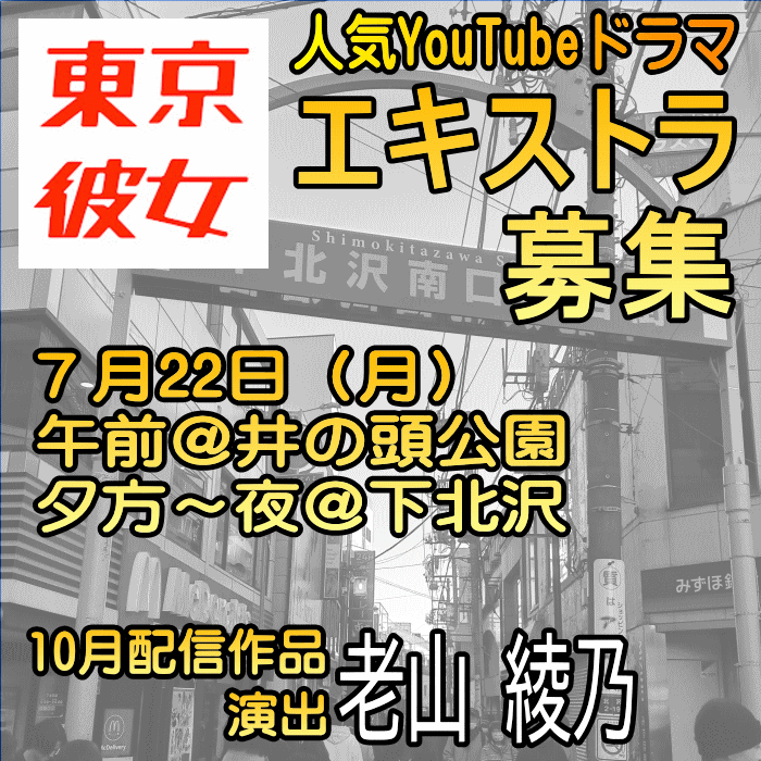 2023-07-24 エキストラ募集◆注目のYouTubeドラマシリーズ"東京彼女"第6弾「私の、あの東京」〓🎁オリジナルグッズ進呈