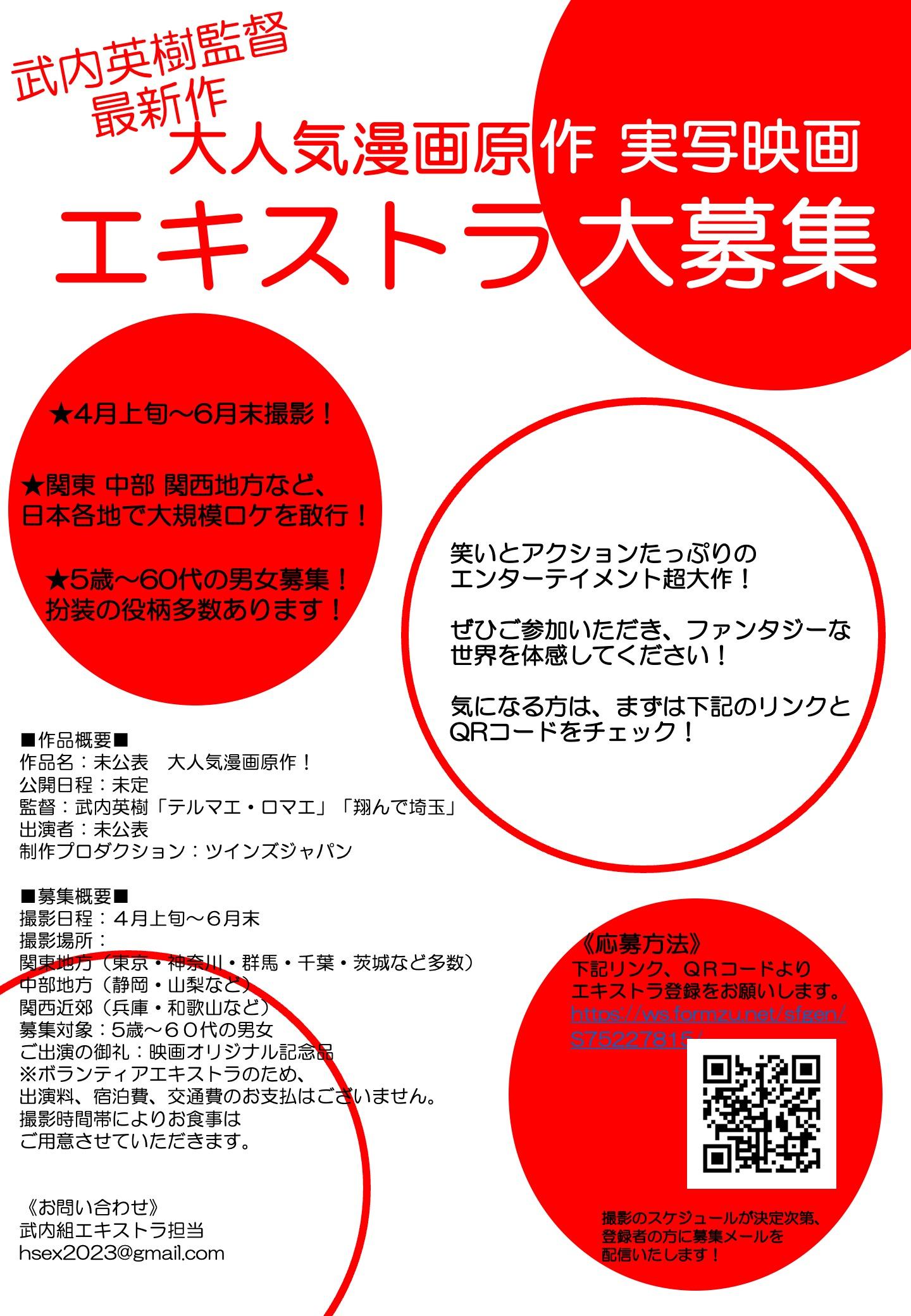 - 武内監督新作映画では、4月上旬~6月末に日本各地 ▼