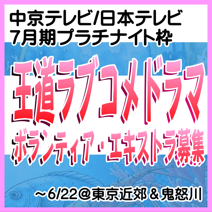 映像制作会社「テレパック」様からのご依頼により、7月期連続ドラマのエキストラ募集情報をお知らせします。