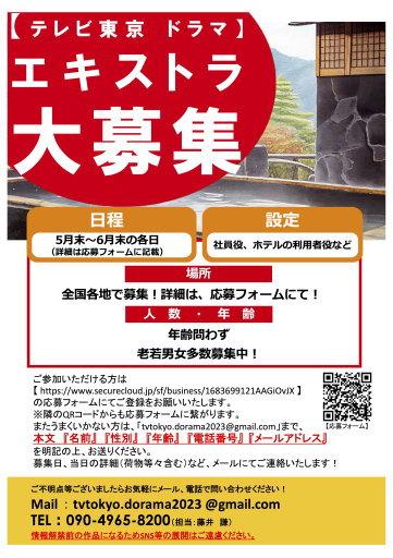 ご依頼により、新作ドラマのエキストラ募集情報をお知らせします。