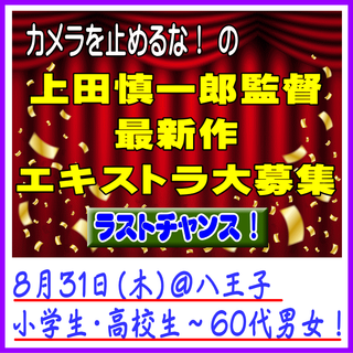 映像制作会社からのご依頼により、上田慎一郎監督最新作のエキストラ募集情報をお知らせします。