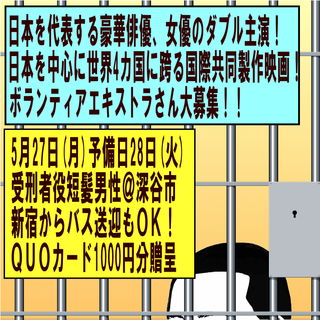 日本を代表する豪華俳優・女優をダブル主演に迎え、日本を中心に世界4カ国で撮影を敢行する国際共同製作新作映画の"日本ロケ・パート"の撮影を盛り上げて頂けるボランティアエキストラさん大募集します!!