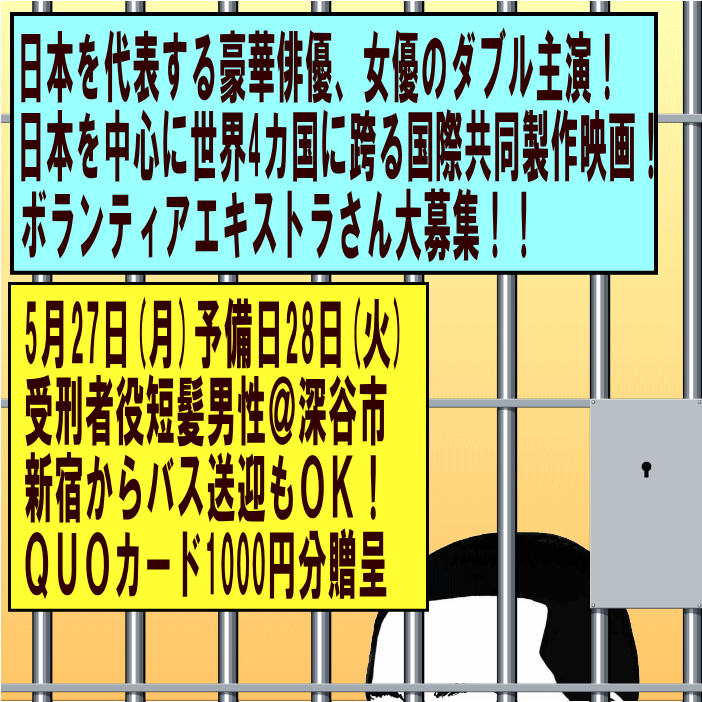 国際的劇場映画に爪アトを残したい短髪男性のみなさまは、どうぞご応募ご検討を。