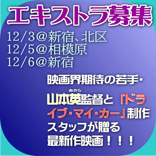 映像制作会社からのご依頼により、下記新作映画のエキストラ募集情報をお知らせします。