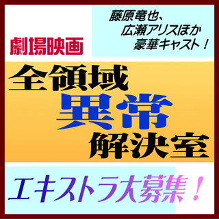 昨秋にドラマ版のエキストラ募集をお手伝いした「全領域異常解決室」の映画化版です。ひとまずリンク先で「登録」することで、募集詳細情報をいちはやく得ることができます。ご興味お持ちのかたはさっそく応募フォームへどうぞ。