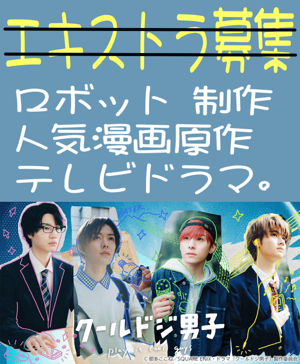🔔エキストラ募集◆(株)ロボット制作:人気漫画が原作、のんびり・ほっこり系イケメンドラマ!〓📅3/1~26@東京都内各所、千葉(柏市)など◆交通費&お食事支給〓📣監督:湯浅弘章、枝優花、柳明菜