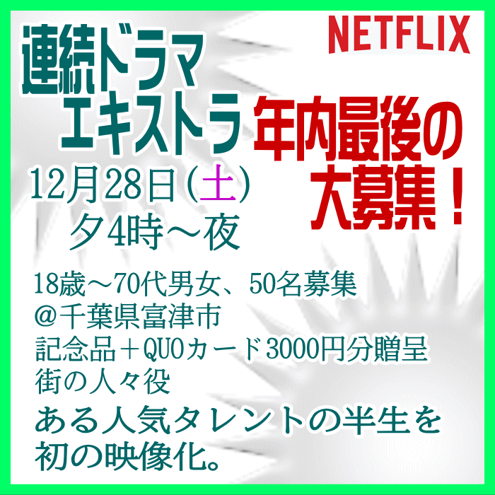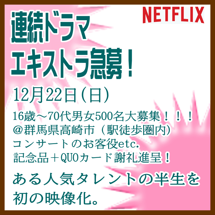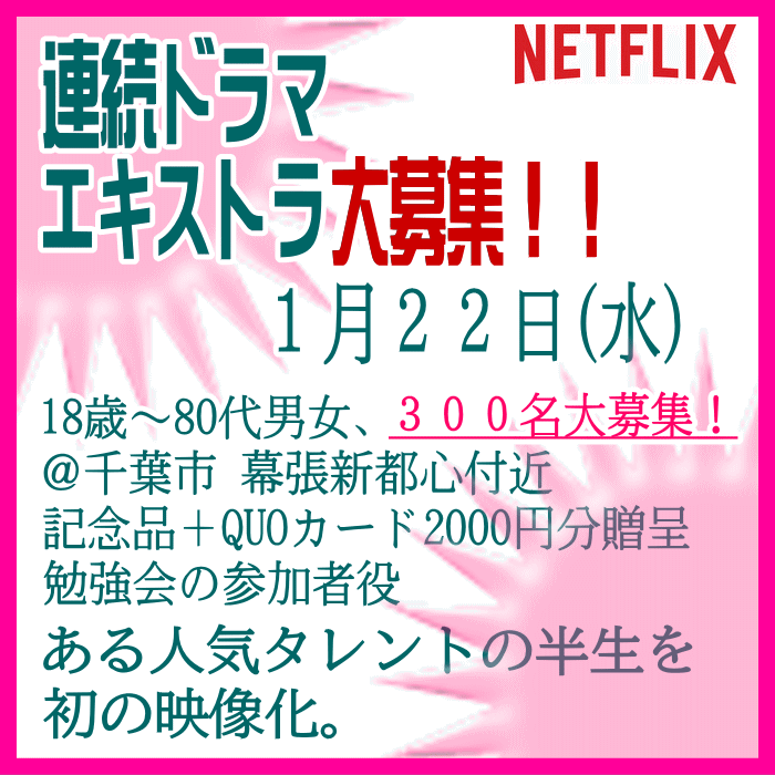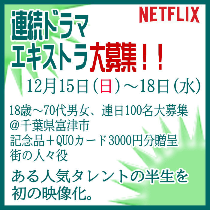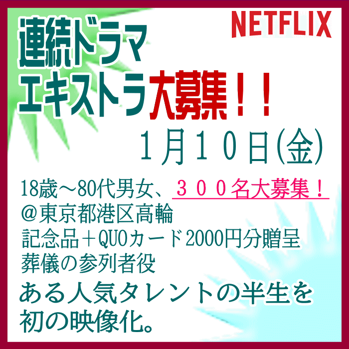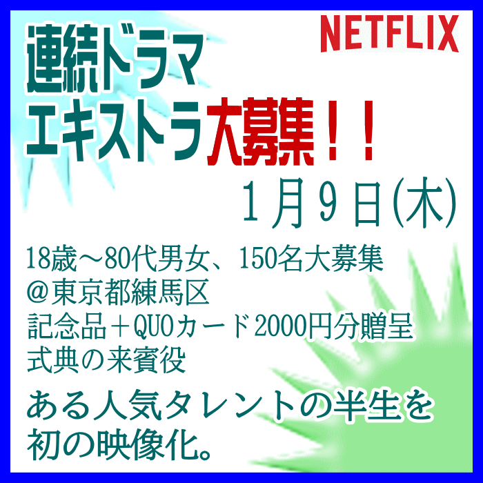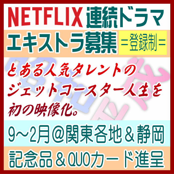 🎬エキストラ募集◆世界配信 Netflix連続ドラマ◆監督:瀧本智行/大庭功睦〓 🖊昭和~平成を駆け抜けた、ある人気タレントの人生