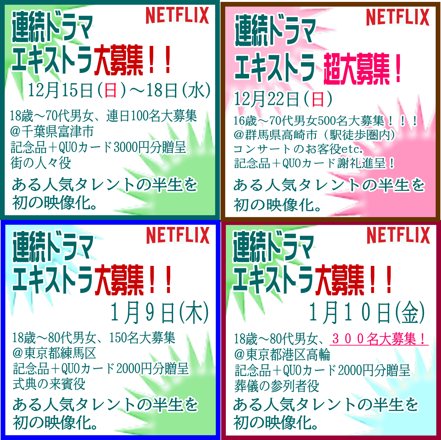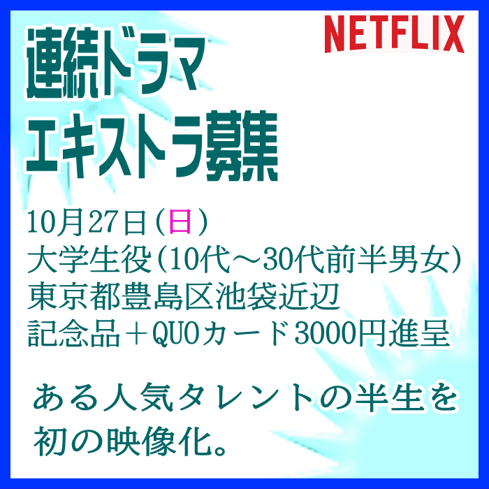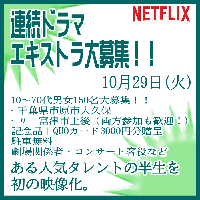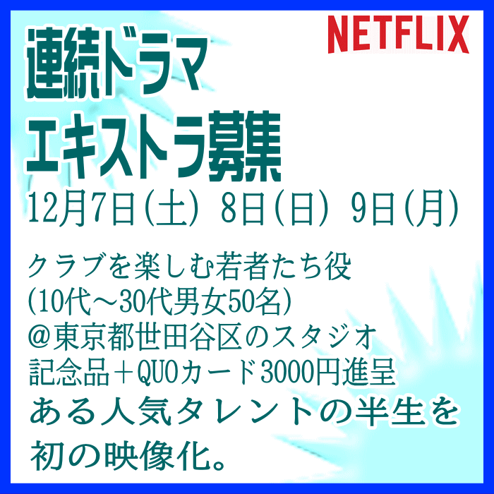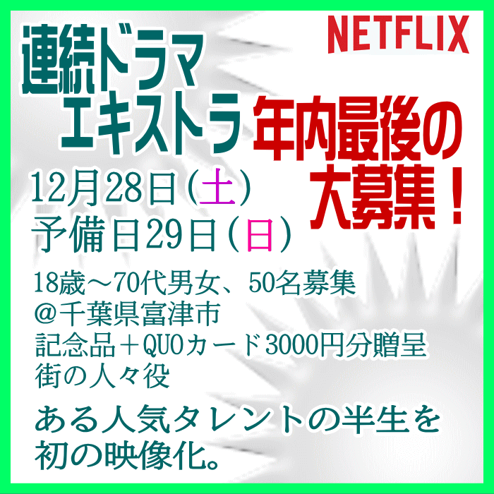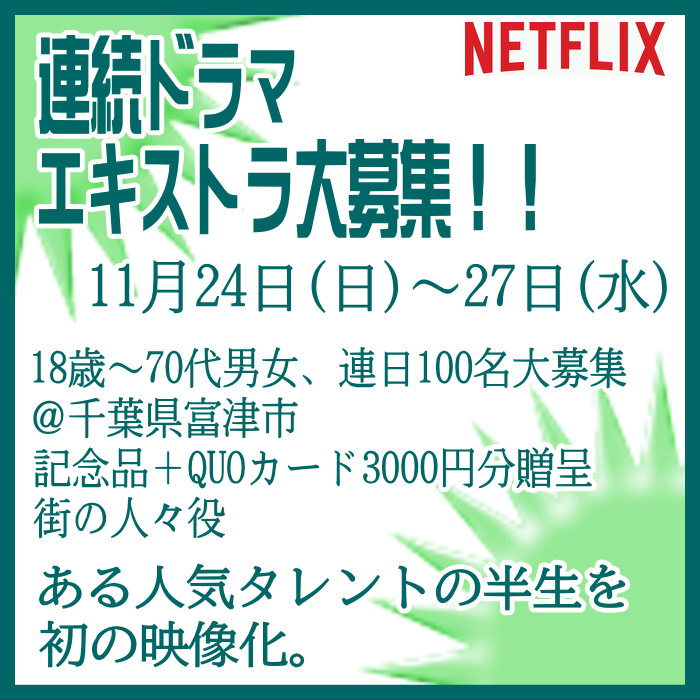 🎬エキストラ募集◆世界配信 Netflix連続ドラマ◆監督:瀧本智行/大庭功睦〓 🖊昭和~平成を駆け抜けた、ある人気タレントの人生