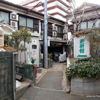 - 1948年(昭和23年)創業のモーレツにレトロな宿。50人収容の宴会広間あり。東京メトロ南北線「東大前」駅1分ほど。願行寺というお寺の山門の隣、駐車場の脇の私道をぐぐっと入った先。