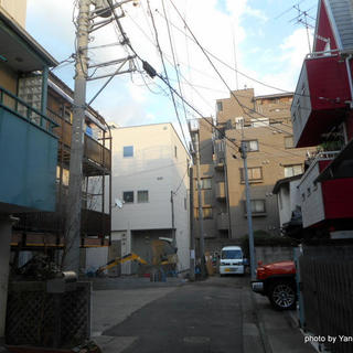 中央左側、アパート建設中らしき場所が「松嶋旅館」跡地。鮫洲駅から東にまっすぐ、旧東海道を横切ってさらに進んだ先の路地のどんづまりに位置する。