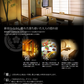 - 「男性1人」「女性1日」「男女のカップル」「女性2人」での宿泊のみ可能。男性2人や3人以上1室での宿泊はできない。