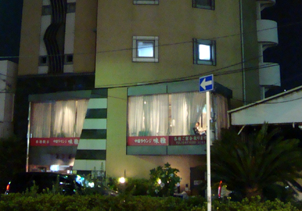 ←写真左手下の少し低くなっているあたりがエントランス。2階は中華ラウンジ「味雅」。